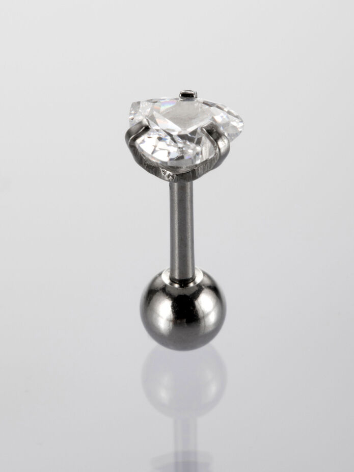 Piercing ve tvaru činky o délce 1,3 cm s kuličkou o průměru 4 mm a drobným krystalem ve tvaru srdce s průměrem 5 mm, má tloušťku 1 mm. Má stříbrnou barvu, z jedné strany kuličku a na druhém konci krystal ve tvaru srdíčka. Dá se nosit nejen v uchu, ale i pod jazykem, jako marley, nebo ve rtu, jako jestrum.
