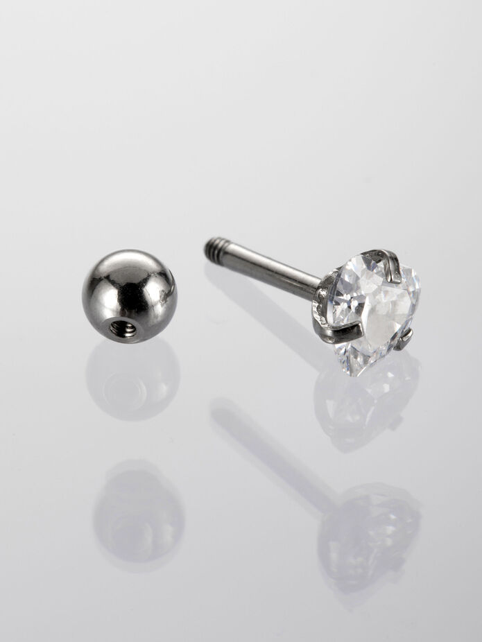 Činka piercing do ucha s čirým krystalem ve tvaru srdce z chirurgické oceli je skvělým doplňkem k jakémukoliv outfitu.