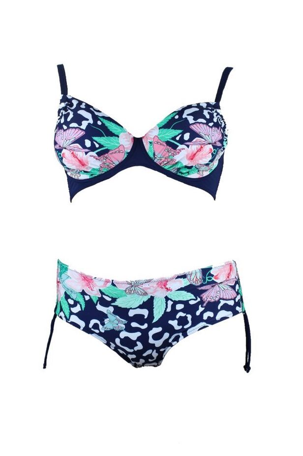 Dámské dvoudílné plavky Plus Modera květy motýli černé modrá tmavá