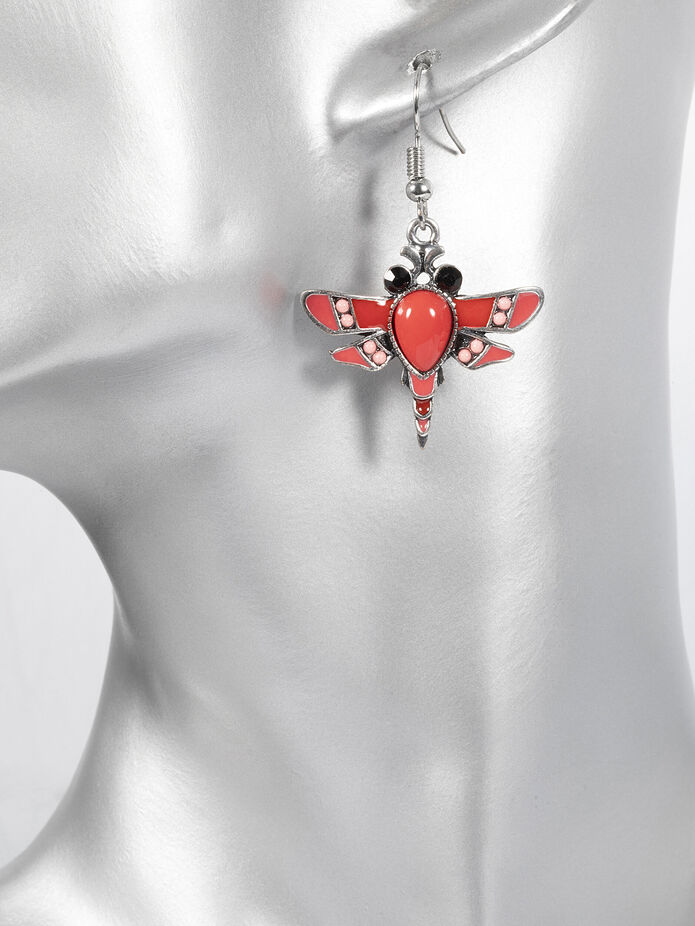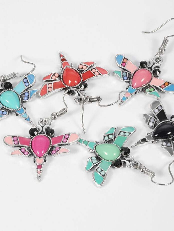 Stylové náušnice ve tvaru vážky. Vážka je zdobena barevnými korálky. Náušnice jsou visací a z obecného kovu. Udělejte si i vy radost tímto kouzelným doplňkem, který oživí každý outfit!