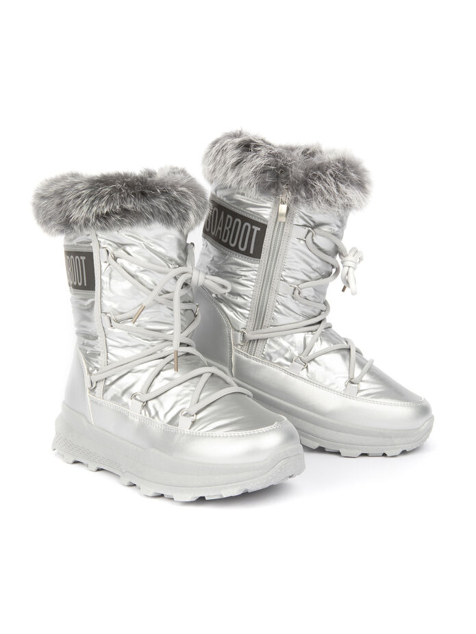 Dámské stylové sněhule s kožíškem stříbrná