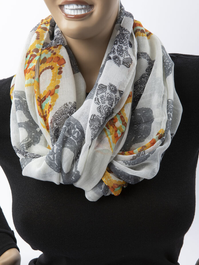 Tento stylový šátek typu tunel nesmí ve vašem šatníku chybět! Svým vzorem a barvami se tento šátek skvěle hodí na podzim.