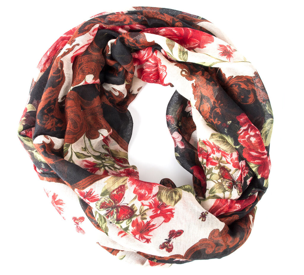 Dámská šála-tunel s výstředním motivem květin. Modní šála-tunel v neotřelém módním designu.