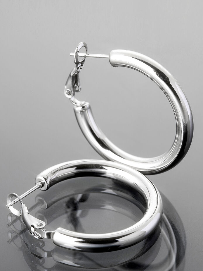 Tyto moderní kruhové náušnice zaujmou svým minimalistickým a hladkým provedením. Díky svému čistému tvaru a stříbrnému lesku působí nadčasově, elegantně a velmi vkusně.