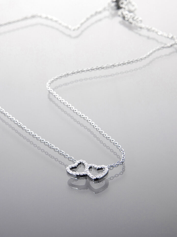 Elegantní náhrdelník ve tvaru dvou srdcí je dokonalým doplňkem pro každou ženu či dívku, která si potrpí na stylové a kvalitní šperky. Tento náhrdelník z chirurgické oceli stříbrné barvy je nejen krásný, ale také odolný a hypoalergenní, což z něj činí ideální volbu pro každodenní nošení. Osazení drobnými zářivými krystalky dodává šperku nádech luxusu a elegance, což z něj činí také perfektní doplněk pro speciální příležitosti, jako jsou oslavy, večírky nebo romantické večeře. Délka náhrdelníku je 42 - 47 cm, což zajišťuje, že se skvěle přizpůsobí každému stylu oblečení. Náhrdelník je ideální pro kombinování s dalšími šperky, ale můžete jej nosit také samostatně. Motiv srdcí mu dodává nadčasový vzhled, který se hodí k různým outfitům, od casual po elegantní.