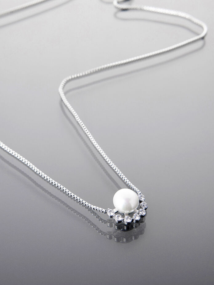 Elegantní náhrdelník z chirurgické oceli stříbrné nebo zlaté barvy s perlou a zářivými krystalky je ideálním doplňkem pro ženy a dívky, které hledají stylový šperk. Díky svému designu a kvalitnímu zpracování bude tento náhrdelník dokonalým doplňkem každého vašeho outfitu.
