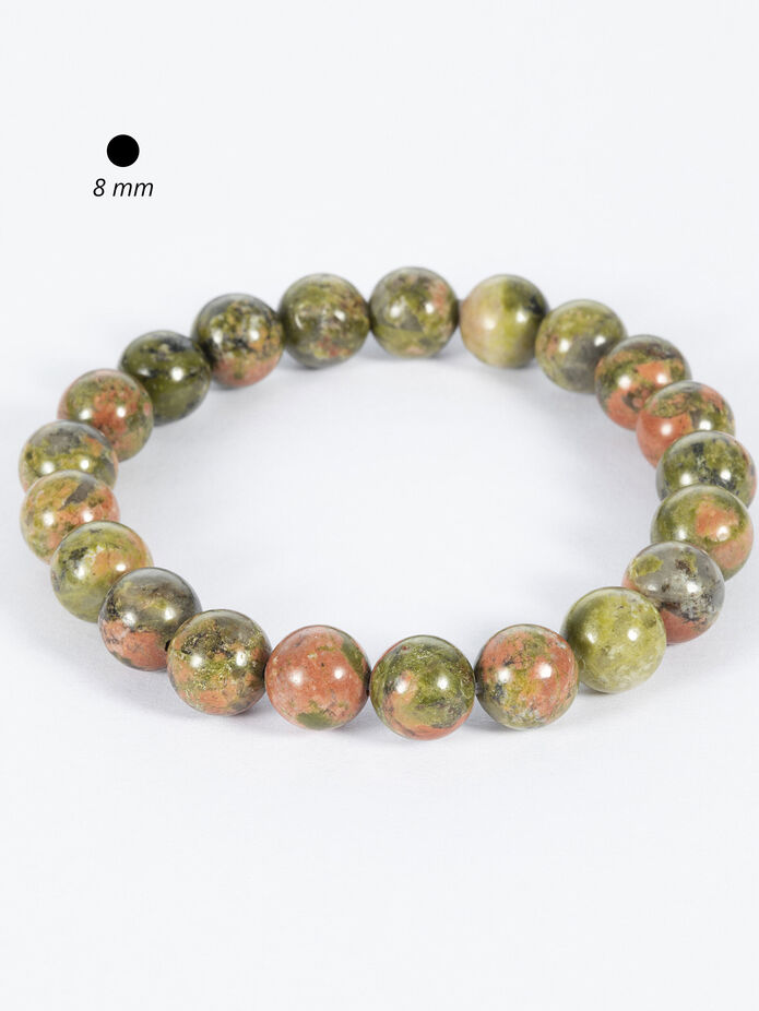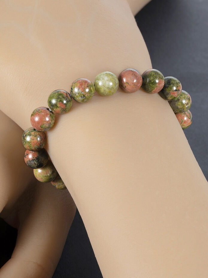 Elegantní náramek z korálků z unakitu je skvělým doplňkem k jakémukoliv outfitu.