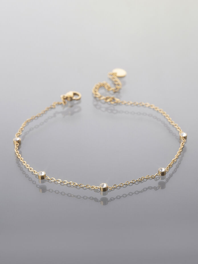 Tento **řetízek na nohu** je dokonalým doplňkem pro každou ženu, která chce zvýraznit svou ženskost a eleganci. Vyrobený z **chirurgické oceli**, tento šperk je nejen krásný, ale také odolný a hypoalergenní, což z něj činí ideální volbu pro každodenní nošení. Jeho **stříbrná barva** dodává šmrnc a lesk, zatímco osazení **krystalem** přidává nádech luxusu a jiskření, které upoutá pozornost. Délka řetízku je nastavitelná v rozmezí **22-27 cm**, což zajišťuje perfektní fit pro každou nohu.