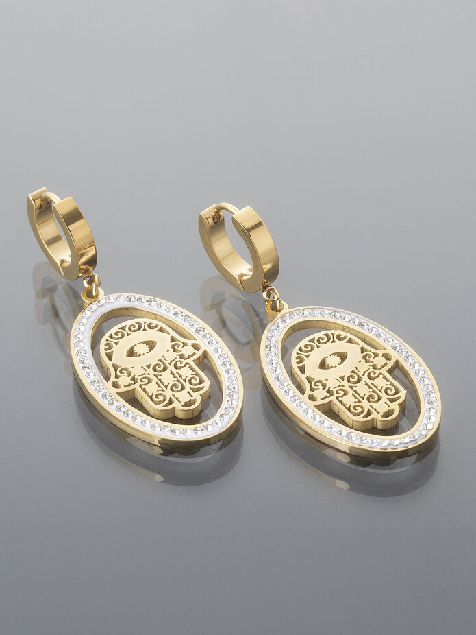 Objevte kouzlo náušnic z chirurgické oceli, které spojují moderní design se starobylým motivem ruky Fátimy. Tyto náušnice ve stříbrné nebo zlaté barvě osazené drobnými krystalky jsou ideálním doplňkem pro každou ženu, která hledá něco originálního, chce vyjádřit svou osobnost a styl. Jejich jedinečný vzhled a kvalitní materiál zaručují, že se stanou oblíbeným kouskem ve vašem šperkovnici. Chirurgická ocel je známá svou odolností a hypoalergenními vlastnostmi, což z ní činí perfektní volbu pro citlivou pleť. Ruka Fátimy symbolizuje boží ochranu, štěstí, moc a sílu, odhání negativní energii.