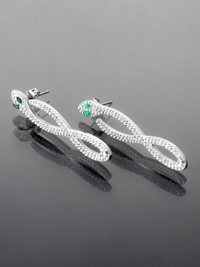 **ANALÝZA OBRÁZKU:** Na obrázku jsou vidět visací náušnice ve tvaru zvířátek, které jsou osazeny krystaly. Náušnice mají elegantní design a jsou vyrobeny z chirurgické oceli, což zajišťuje jejich trvanlivost a hypoalergenní vlastnosti. Celkový vzhled je moderní a stylový, ideální pro ženy a dívky, které chtějí vyjádřit svou osobnost.