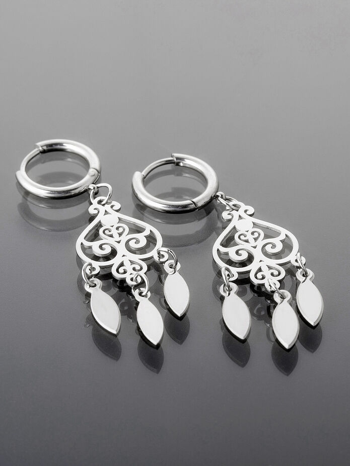 Tyto elegantní náušnice z chirurgické oceli v stříbrné barvě jsou ideální volbou pro moderní ženy a dívky. Bez kamínků a s etno prvky skvěle doplní jakýkoli outfit.