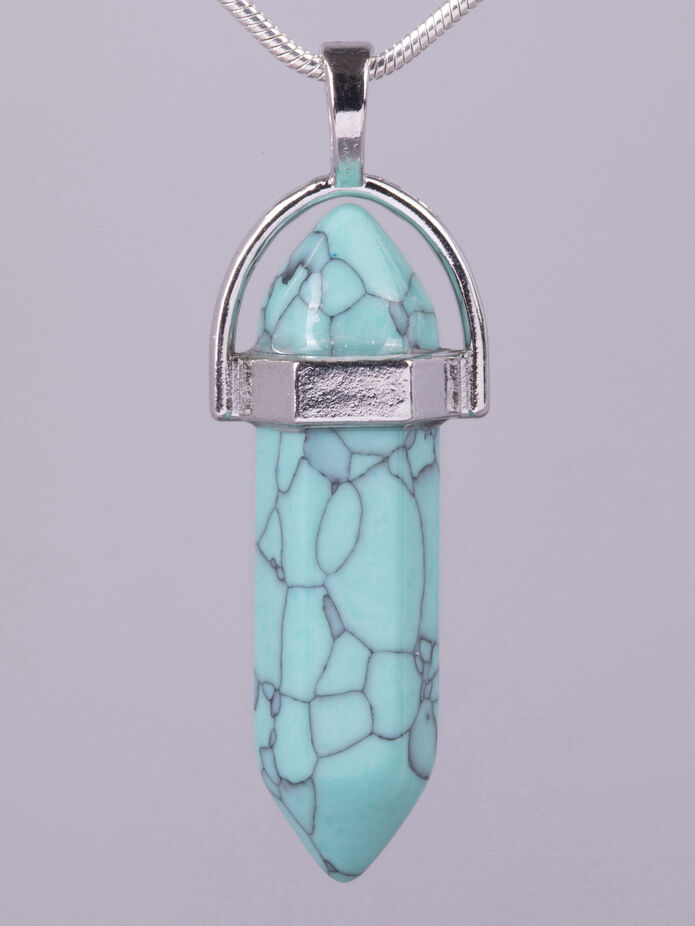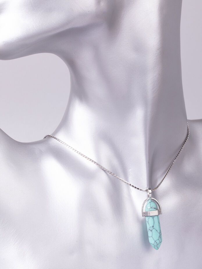 Exkluzivní amulet ve tvaru kyvadla z tyrkenitu může sloužit i jako přívěsek a být skvělým doplňkem k jakémukoliv outfitu. Skvěle doladí vzhled každé ženy či slečny.