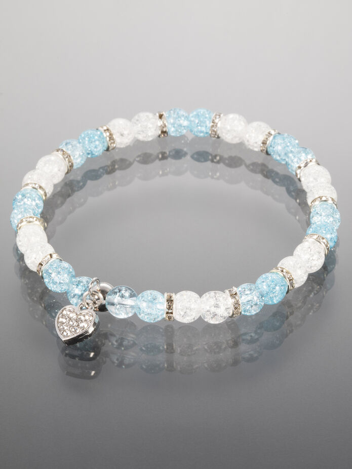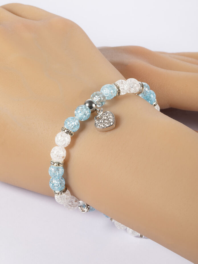 Exkluzivní drobný náramek z korálků pukaného křišťálu s přívěskem srdíčka je skvělým doplňkem ke každému outfitu, perfektně doladí a podtrhne nevšední vzhled každé dámy či slečny.