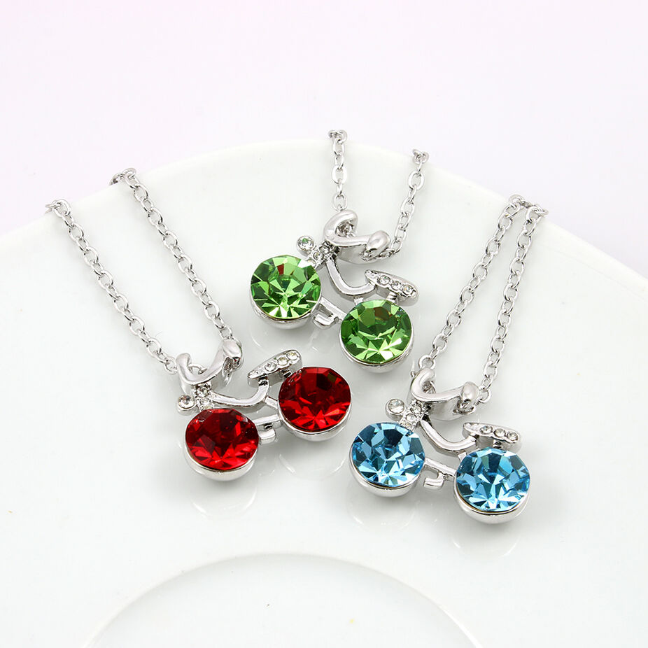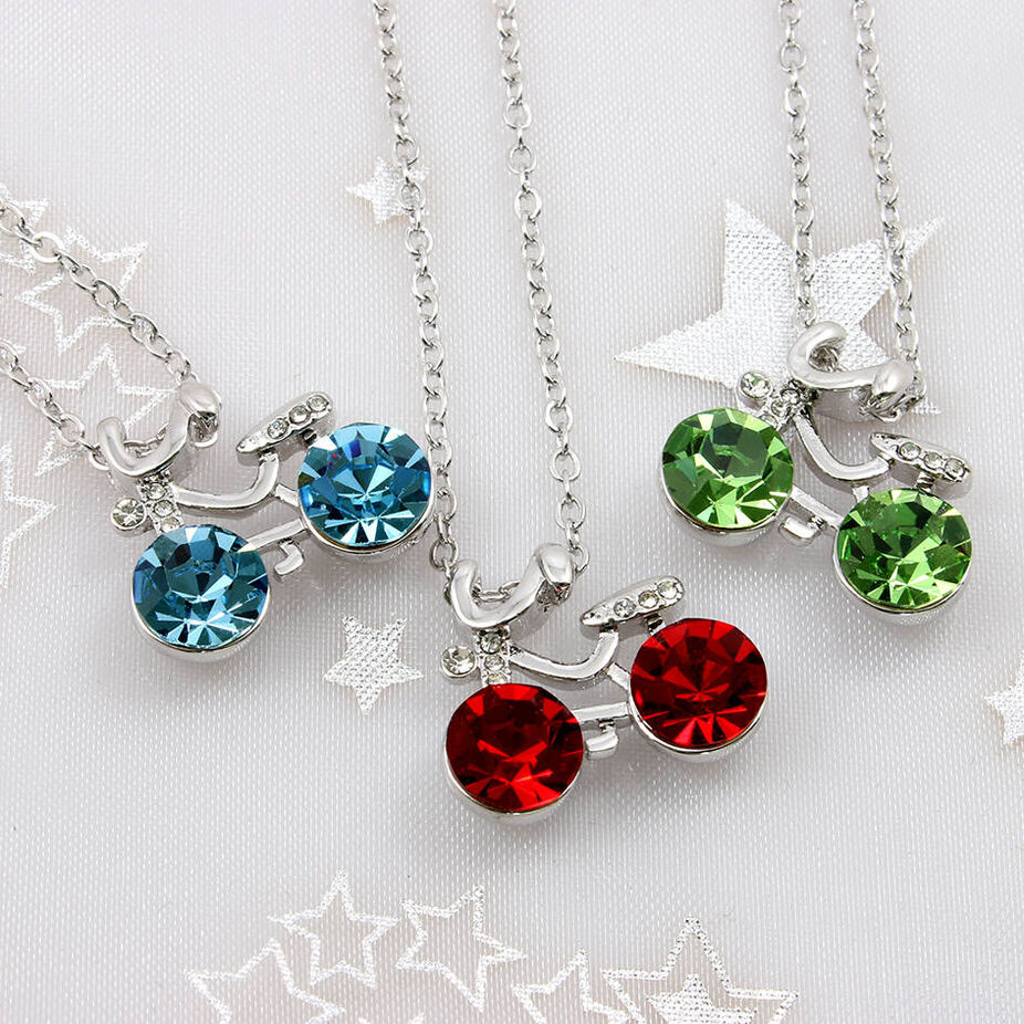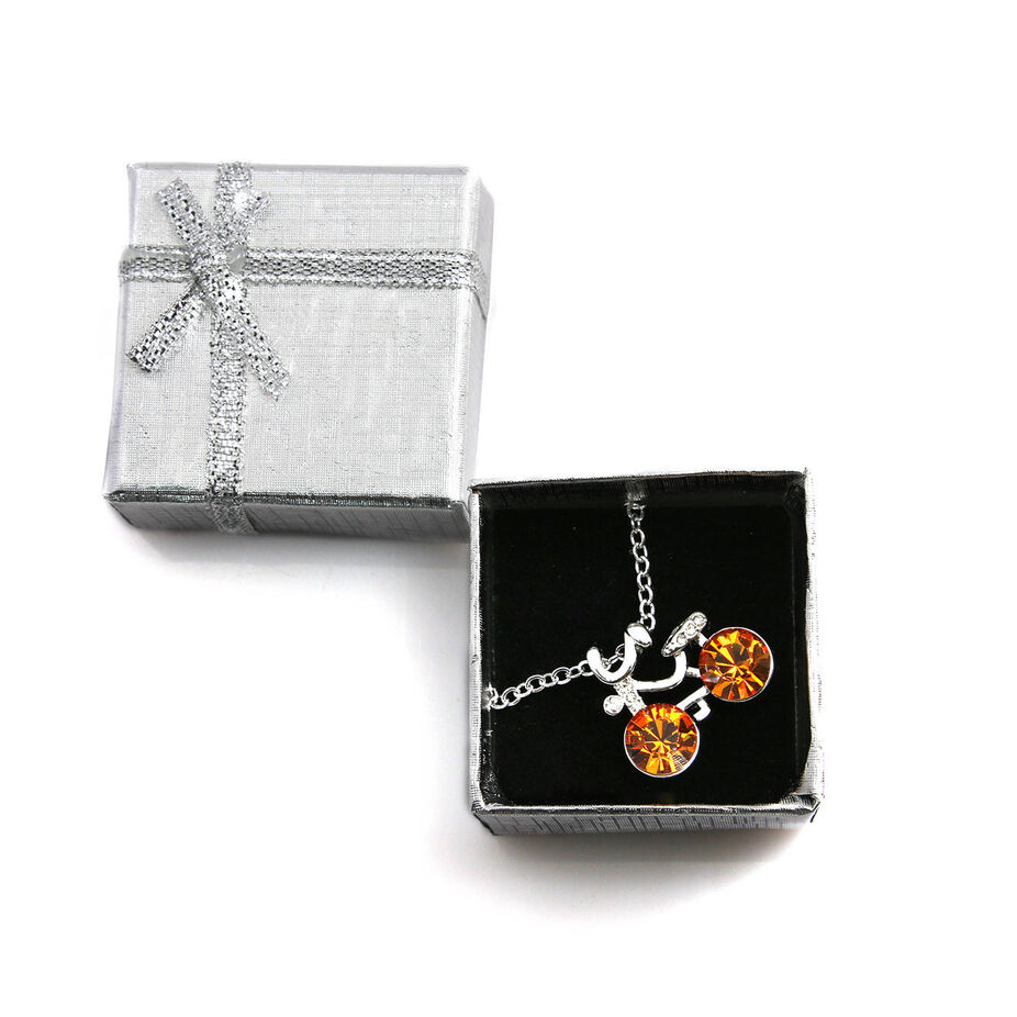 Náhrdelník připomíná malé jízdní kolo, které je osázeno několika třpytivými krystaly Swarovski elements a zpracováno do nejjemnějších detailů. Dva větší barevné krystalky znázorňují kola bicyklu, zatímco několik drobných je vloženo na místo řídítek a sedla. Tento šperk je důmyslnou kombinací vtipu, originality a elegance. Náhrdelník s krystaly Swarovski elements se hodí pro běžné denní nošení i zvláštní příležitosti, při kterých dokáže podtrhnout půvab své majitelky. Jako dárek vykouzlí úsměv na tváři mladistvé a aktivní ženy.