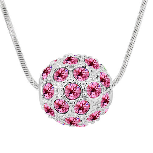 Exkluzivní náhrdelník ve tvaru kuličky vysázené krystaly Swarovski elements je moderním doplňkem ke každému outfitu. K dostání je ve více barevných provedení - fialová, bílá, multicolor, růžová a azurová.