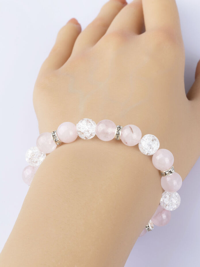 Exkluzivní náramek z korálků růženínu a pukaného křišťálu je skvělým doplňkem ke každému outfitu, perfektně doladí a podtrhne nevšední vzhled každé dámy či slečny.