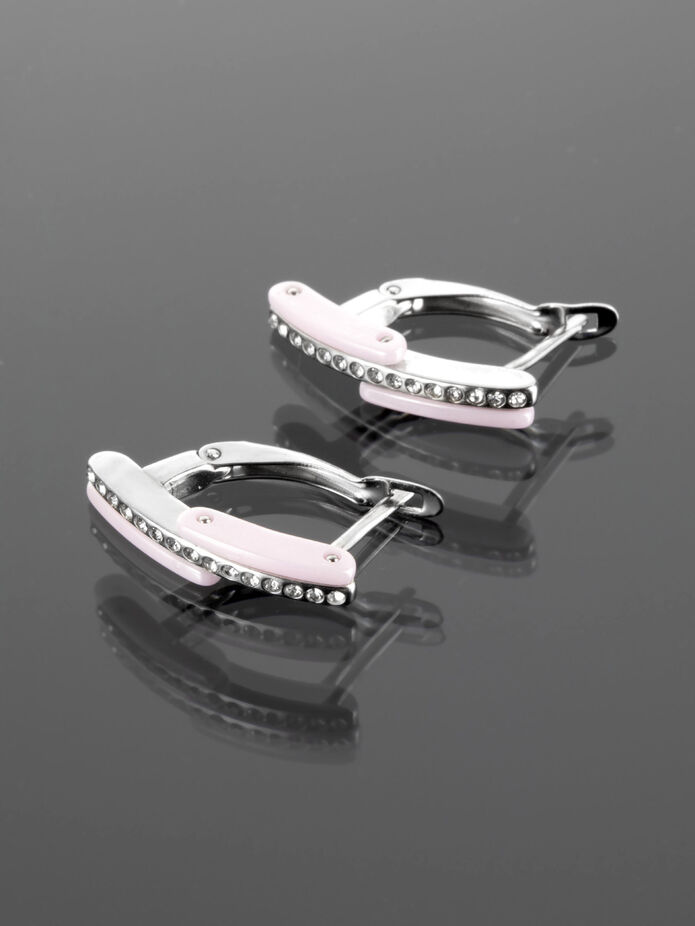 Exkluzivní náušnice v moderním tvaru s drobnými krystaly a keramikou z chirurgické oceli jsou skvělým doplňkem k jakémukoliv outfitu.