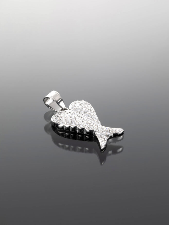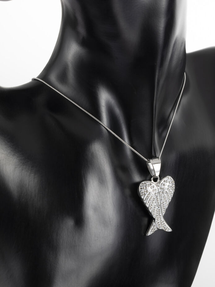 Exkluzivní přívěsek ve tvaru andělských křídel z chirurgické oceli s drobnými čirými krystaly je skvělým doplňkem k jakémukoliv outfitu.