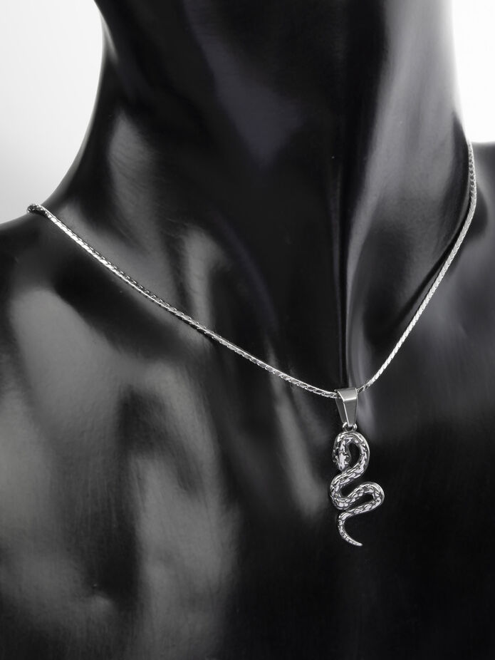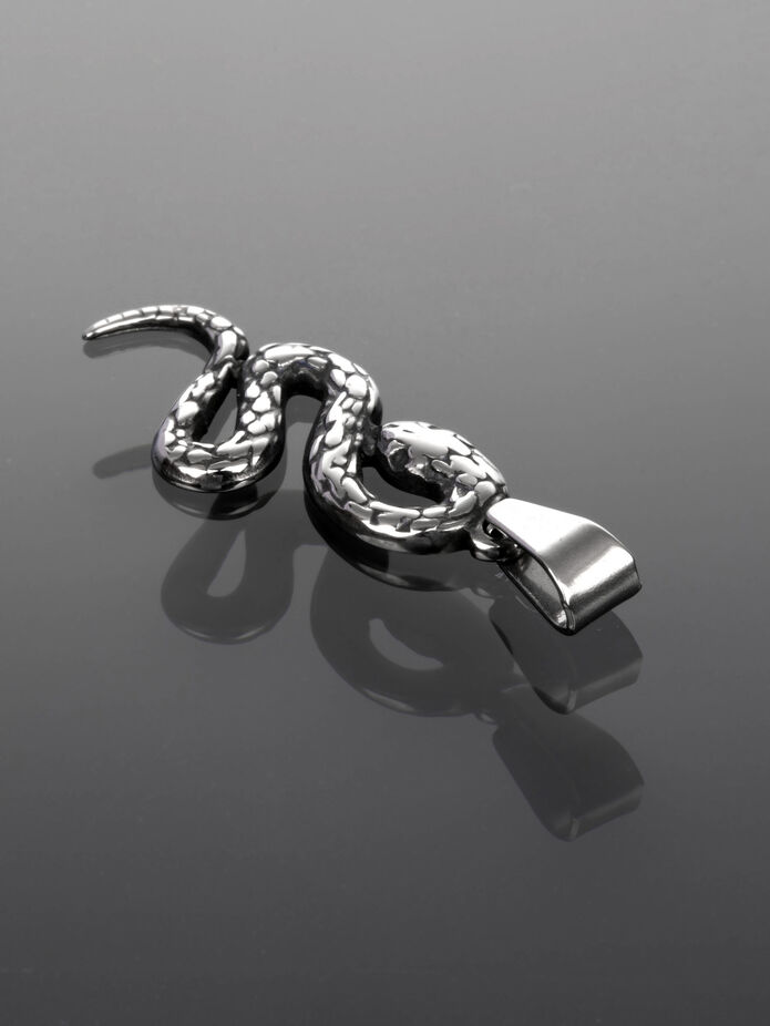 Exkluzivní přívěsek ve tvaru hada s rytými detaily z chirurgické oceli je skvělým doplňkem k jakémukoliv outfitu.
