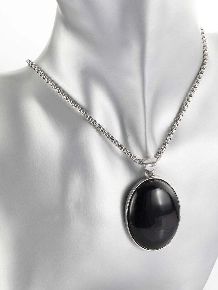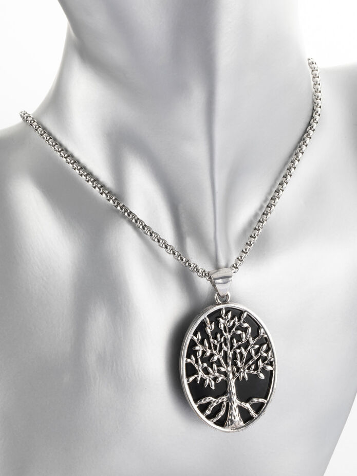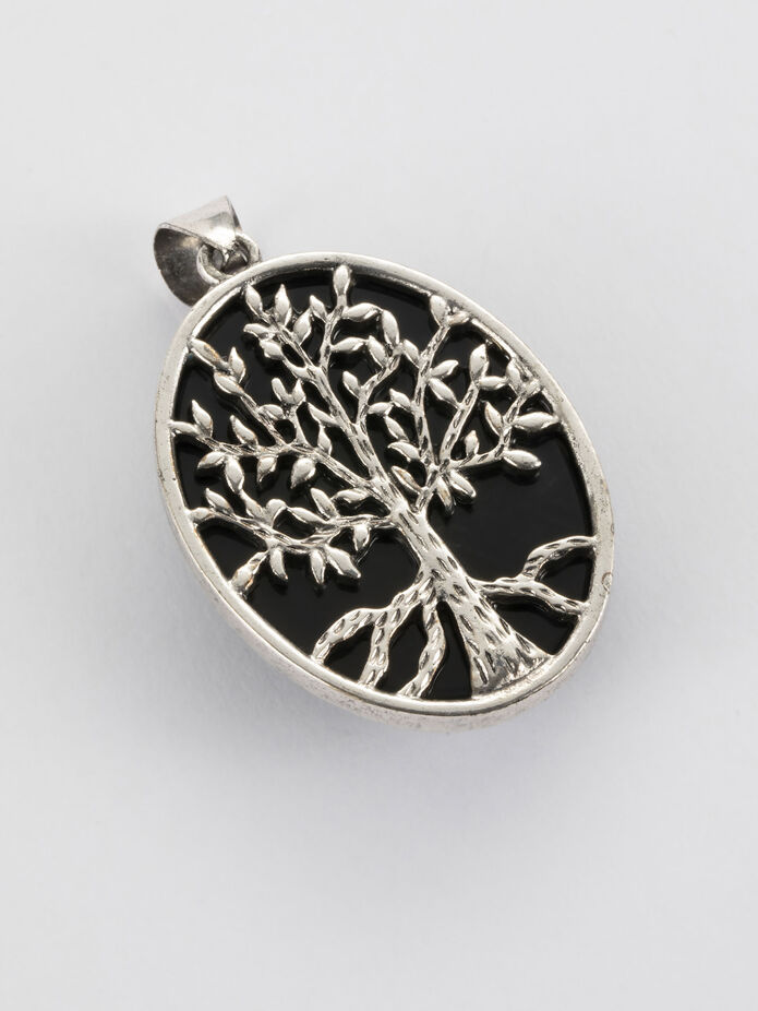 Exkluzivní přívěsek ve tvaru oválu s motivem stromu života s obsidiánem je skvělým doplňkem k jakémukoliv outfitu.
