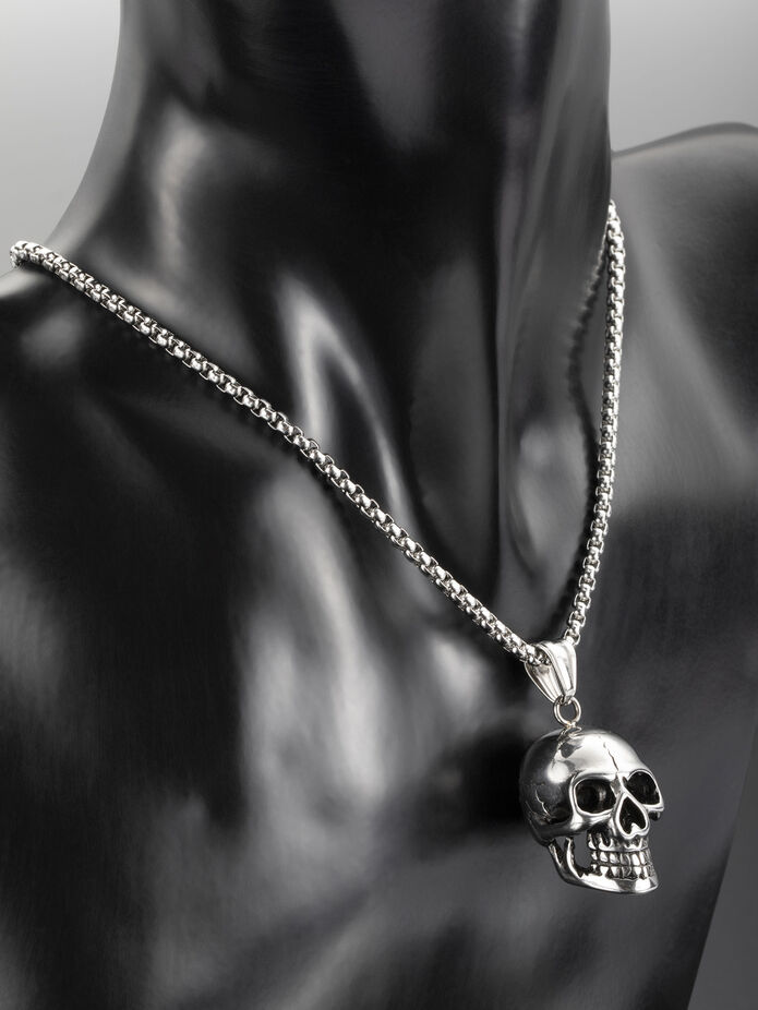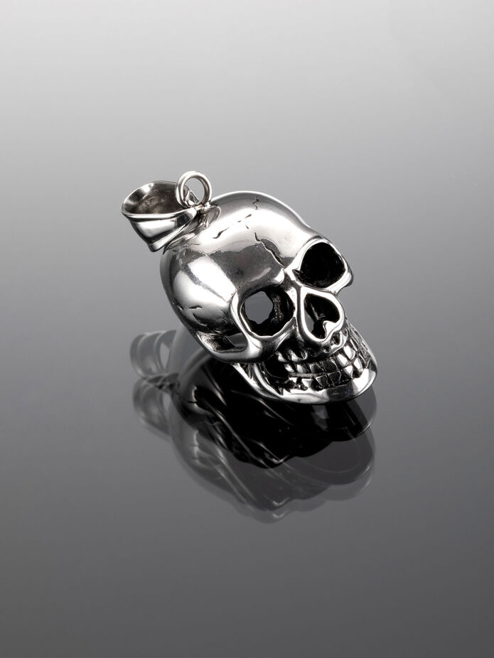 Exkluzivní přívěsek ve tvaru plastické lebky z chirurgické oceli je skvělým doplňkem k jakémukoliv outfitu.
