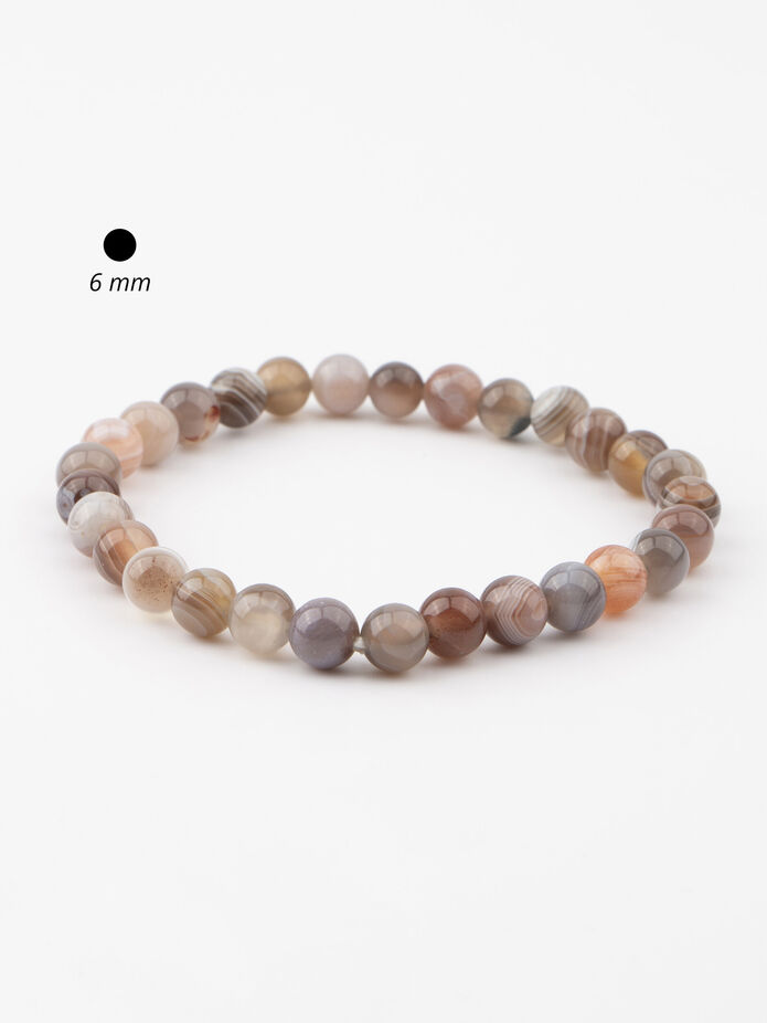 Exluzivni náramek z korálků z achátu je skvělým doplňkem k jakémukoliv outfitu. Korálky o průměru 0,6 cm jsou navlečeny na elastanové niti, díky které je náramek velice pružný, dobře drží na ruce a tak samovolně nesklouzne. Obvod náramku je 18-19 cm. Je vhodný na všední nošení, ale také jako doplněk k šatům či ke kostýmku na společenské události. Díky zbarvení kuliček působí velice elegantně. Na ruce je velmi lehký a dodá ženě eleganci a šarm. Náramek je vhodným doplňkem pro ženy s citem pro eleganci a oblibou jemných šperků. Jeho léčivé účinky ocení každá žena se zájmem o ezoteriku a alternativní léčbu.