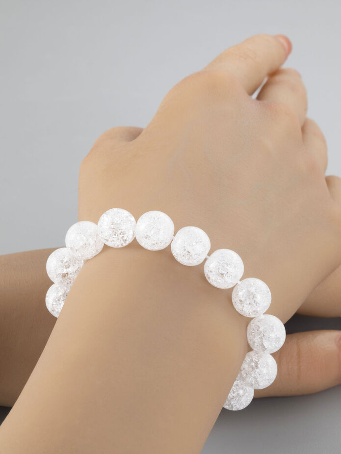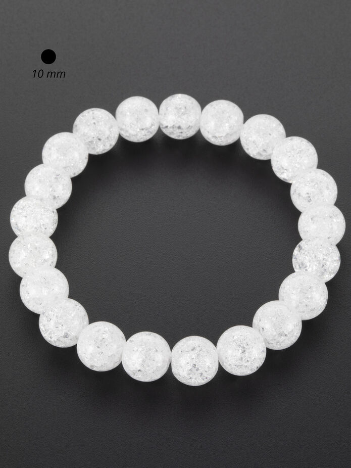 Krásný náramek z korálků z křišťálu je skvělým doplňkem k jakémukoliv outfitu. Korálky o průměru 1 cm jsou navlečeny na elastanové niti, díky které je náramek velice pružný, dobře drží na ruce a tak samovolně nesklouzne. Obvod náramku je 18 cm. Je vhodný na všední nošení, ale také jako doplněk k šatům či ke kostýmku na společenské události. Díky zbarvení a průhlednosti působí velice jemně a elegantně. Náramek je vhodným doplňkem pro ženy s citem pro eleganci a oblibou jemných šperků. Jeho léčivé účinky ocení každá žena se zájmem o ezoteriku.