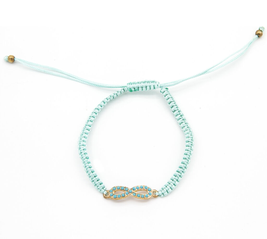 Náramek z tkaniny má na sobě ozdobu ve tvaru Nekonečno , která je osázena drobnými kamínky. Znak je vyroben z bižuterního kovu zlaté barvy. Zapínání je řešeno podobně jako u Shamballa náramků, stačí zatáhnout za tkaničku a nastavit si náramek na svou velikost.