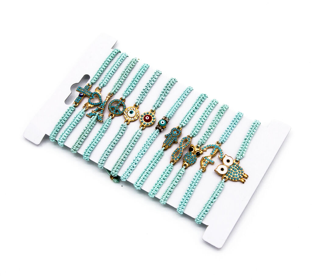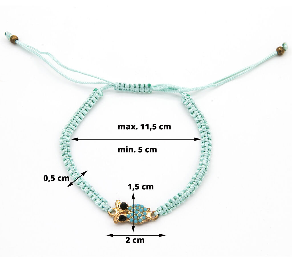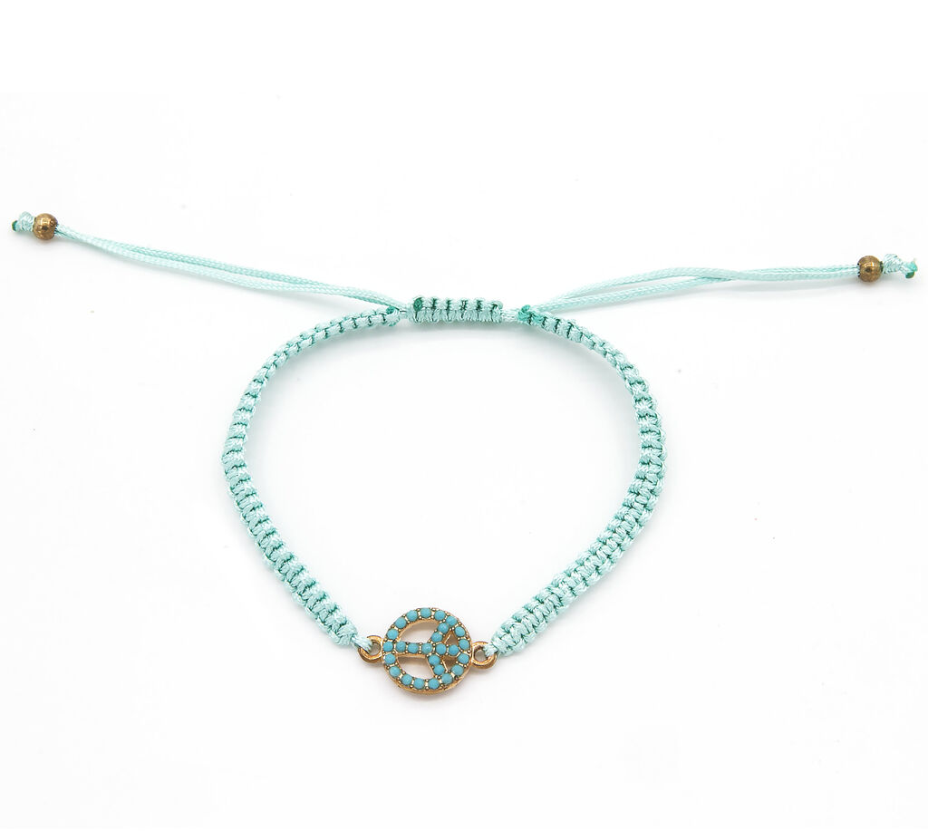 Náramek z tkaniny má na sobě ozdobu ve tvaru Peace Mír , která je osázena drobnými kamínky. Náramek je vyroben z bižuterního kovu zlaté barvy. Zapínání je řešeno podobně jako u Shamballa náramků, stačí zatáhnout za tkaničku a nastavit si náramek na svou velikost.