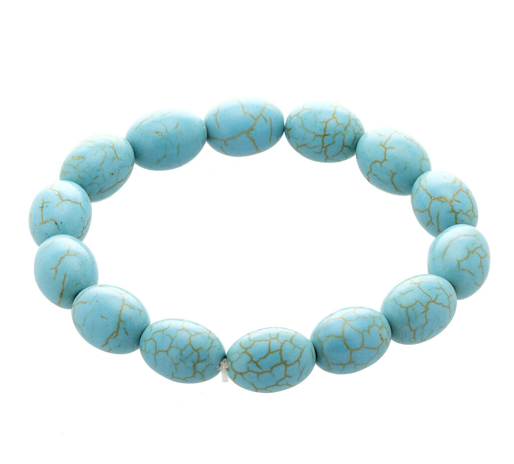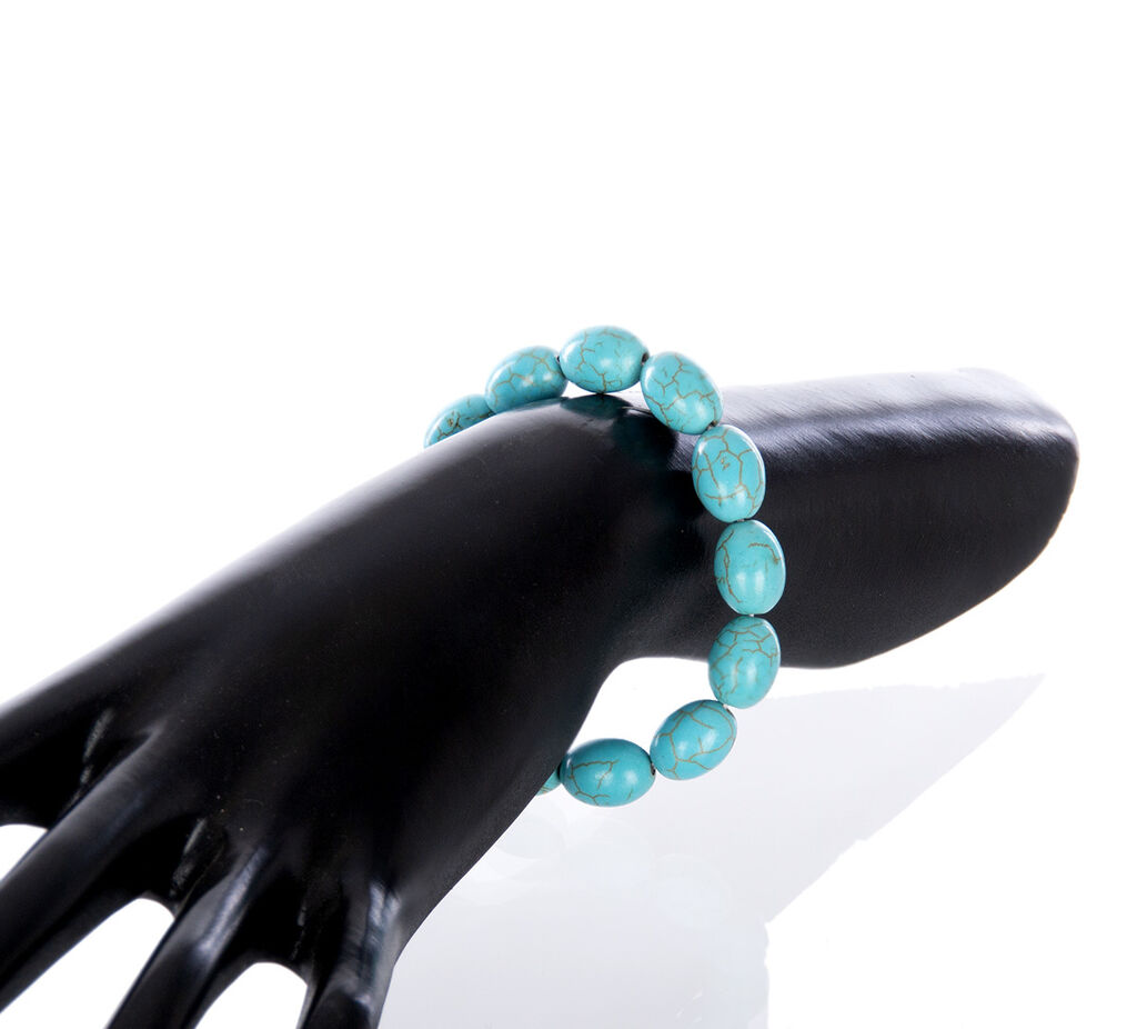 Letošní sezónu jsou v módě doplňky z přírodních materiálů, pořiďte si také jeden! Například náramek z polodrahokamu tyrkenit, který navíc krásně vynikne svou tyrkysovou barvu. Náramek z oválných korálků tyrkenitu je přijemný na nošení a pohodlně se nasazuje pouhým přetažením přes ruku. Náramek můžete sladit s dalšími doplňky z minerálů, které naleznete v naší nabídce.
