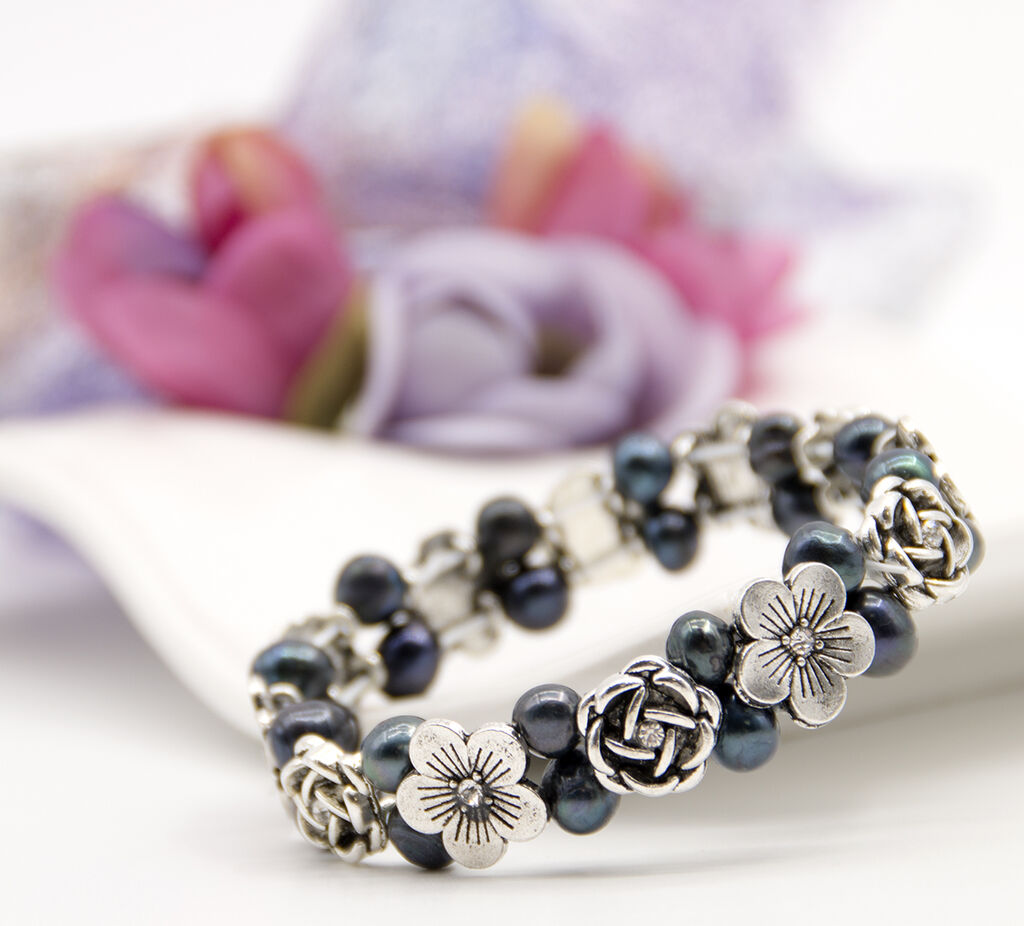 Náramek ve vintage stylu ozdobený říčními perlami se bude vyjímat na ruce každé romantické ženy a dívky.
