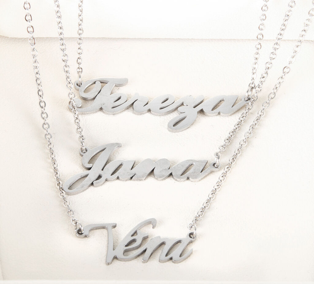 Originální nerezový náhrdelník je vyroben z leštěné chirurgické oceli, která vyniká svou barevnou stálostí a nezpůsobuje alergické reakce. Řetízky z chirurgické oceli se jmény patří mezi oblíbené moderní šperky.