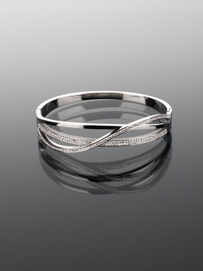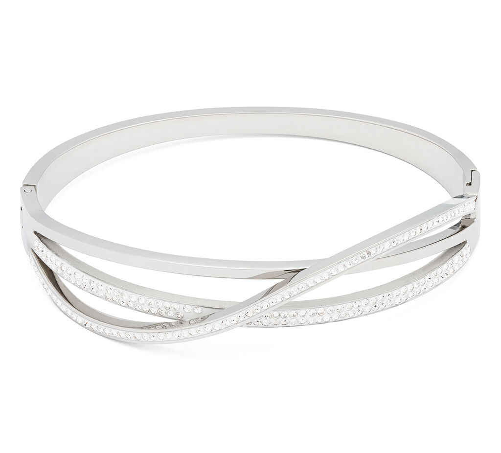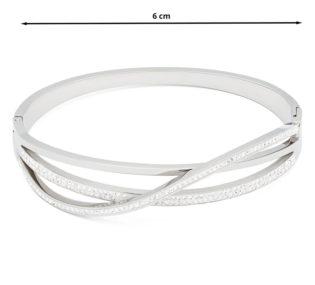 U tohoto Fashion Icon náramku se můžeme spolehnout na jeho pevnost a odolnost díky kvalitní leštěné chirurgické oceli, ze které je vyroben. Efektivní rozevírání umožňuje snadné navlékání. Zaujme nás i lehce vlnité zpracování doplněné bílým podkladem a třpytivými kamínky.