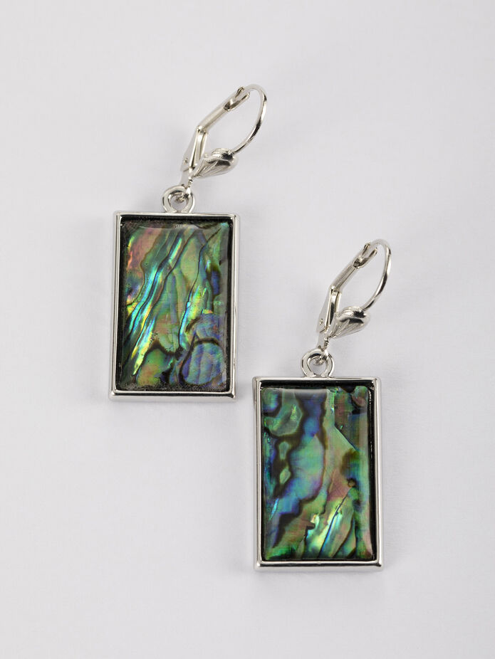 Fashion Jewelry náušnice obdelník s paua perletí vícebarevná