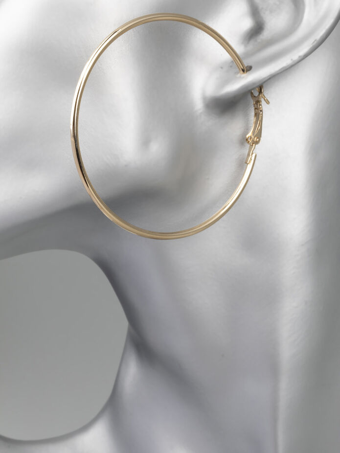 Stylové nadčasové náušnice typu kruh. Tyto náušnice jsou z obecného kovu zlaté barvy barvy, jejich design je jednoduchý a nadčasový, a tak je můžete nosit ke každému outfitu. Zapínání je jednoduché zasouvací. Udělejte si i vy radost s tímto nadčasovým kouskem a doplňte vaše outfity!