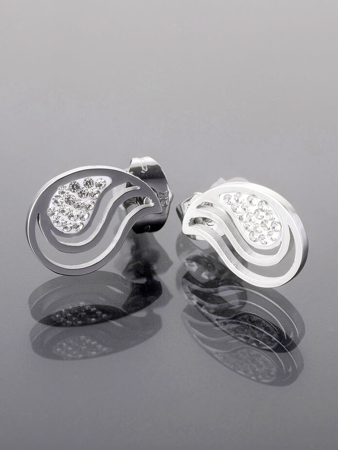 Jemné a decentní náušnice ve tvaru kapičky. Vyrobeno z leštěné chirurgické oceli, s drobnými krystalky. Doplňte svoji sbírku šperků tímto krásným, nadčasovým kouskem! Vhodné také jako zajímavý a milý dárek.