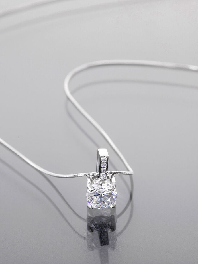 Velejemný hladký řetízek z kvalitní chirurgické oceli zdobí přívěsek se třpytivým čirým krystalkem. Tento nadčasový šperk decentně doplní každý outfit a podtrhne vaši přirozenou eleganci.