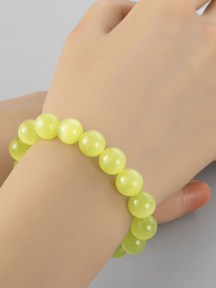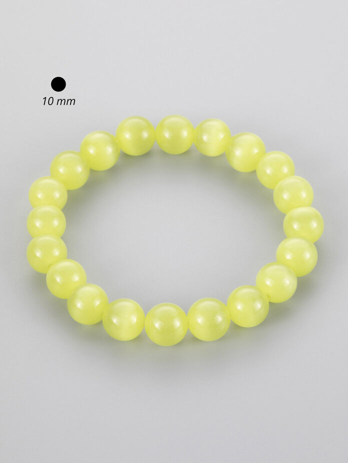 Limetkově žlutý jemný náramek z korálků barveného ulexitu (kočičí oko) průměr korálků 1 cm, je skvělým doplňkem k jakémukoli outfitu. Krásný a elegantní módní doplněk pro každého, kdo miluje vkusné šperky.