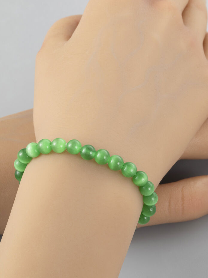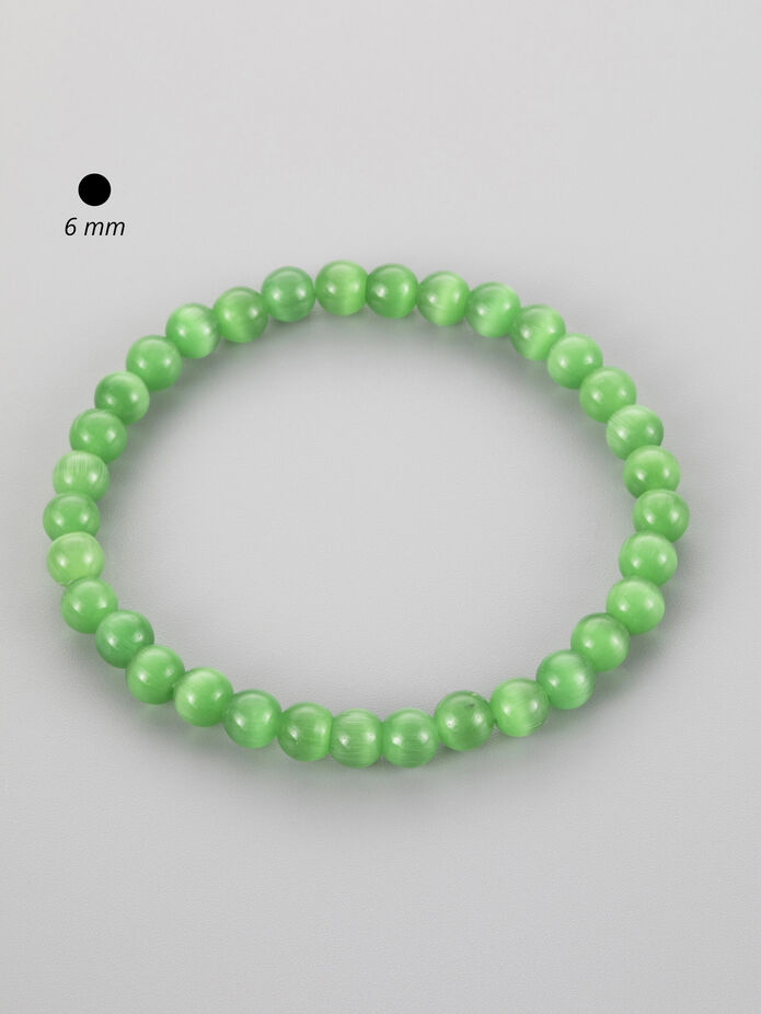 Příjemně zelený jemný náramek z korálků barveného ulexitu (kočičí oko) průměr korálků 0,6 cm, je skvělým doplňkem k jakémukoli outfitu. Krásný a elegantní módní doplněk pro každého, kdo miluje vkusné šperky.