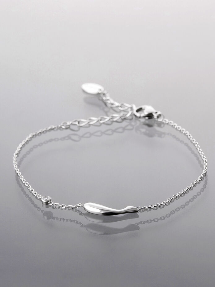 Jemný řetízkový náramek z chirurgické oceli ozdobený kapičkou a krystalkem. Ve stříbrné barvě. Nadchne každého milovníka elegantních a decentních šperků.