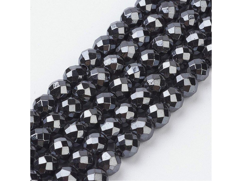 Neukončená šňůra z fazetovaných kuliček hematitu o průměru 10 mm. Na šňůře je navlečeno cca 36 - 38 korálků. Vhodné pro vaše tvoření!