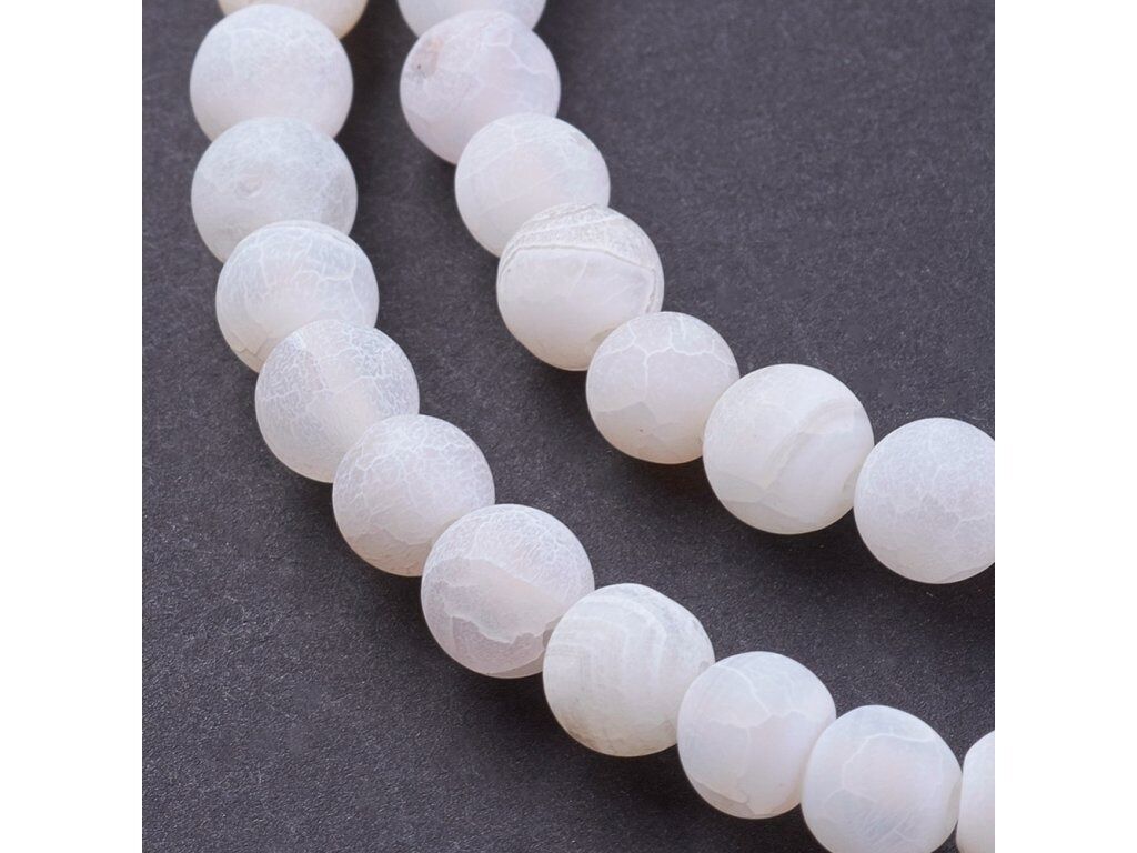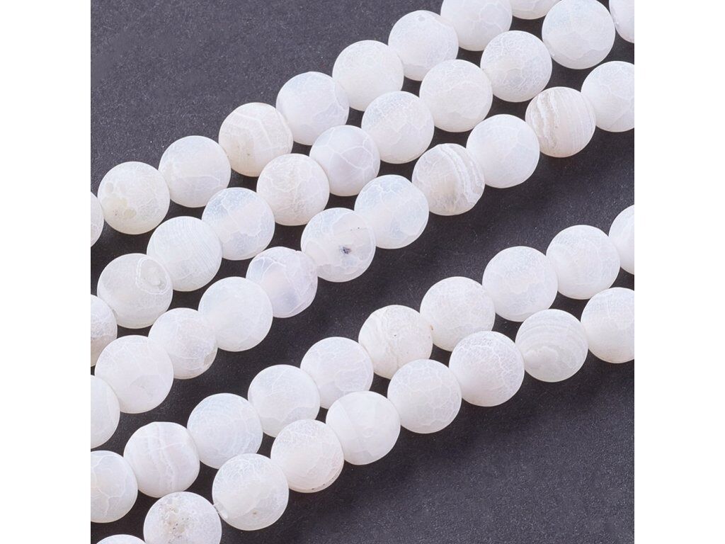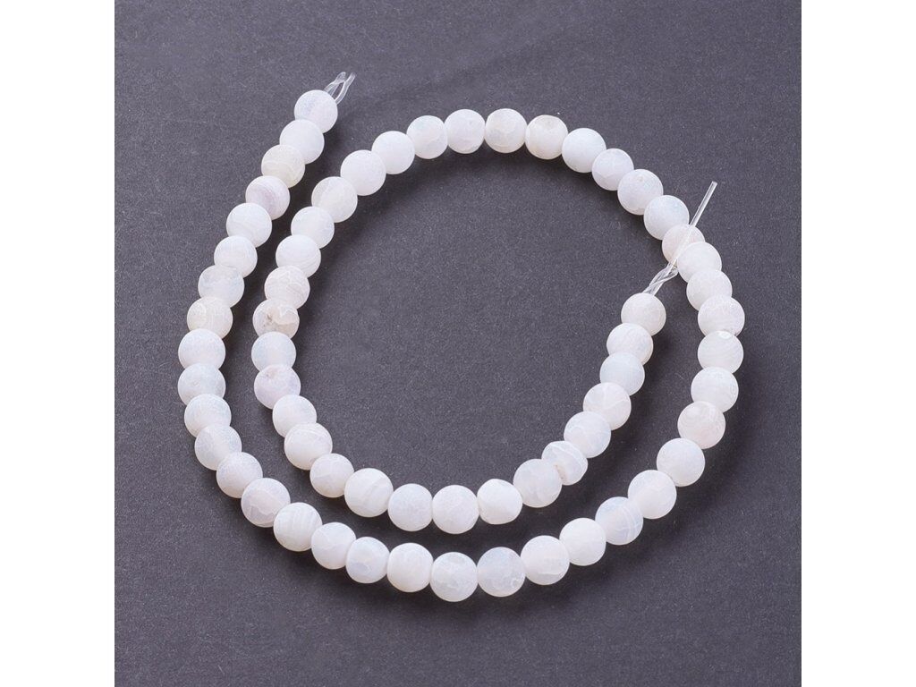 Neukončená šňůra z korálků bílého matného achátu o průměru 6 mm. Na šňůře je navlečeno cca 60 - 63 korálků. Vhodné pro vaše tvoření!