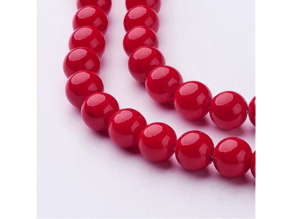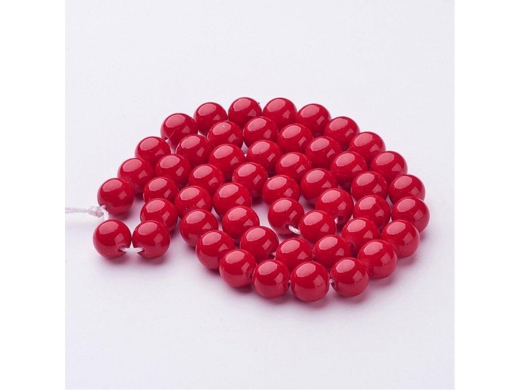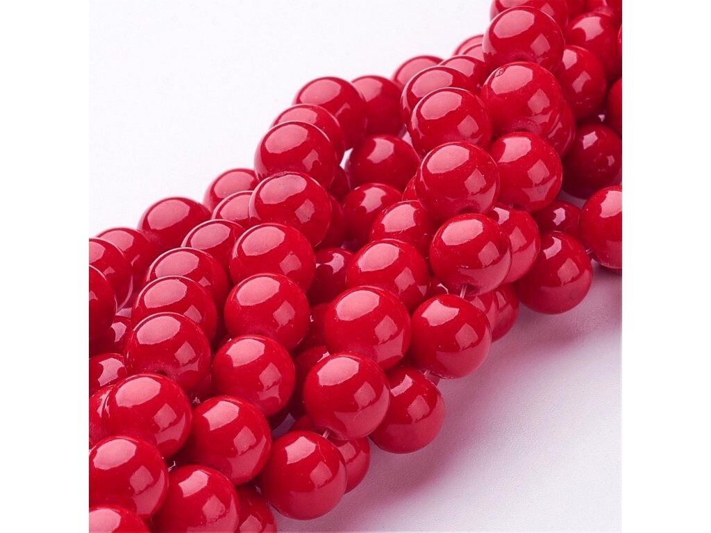 Neukončená šňůra z korálků červeného jadeitu o průměru 8 mm. Na šňůře je navlečeno cca 47 - 50 korálků. Vhodné pro vaše tvoření!