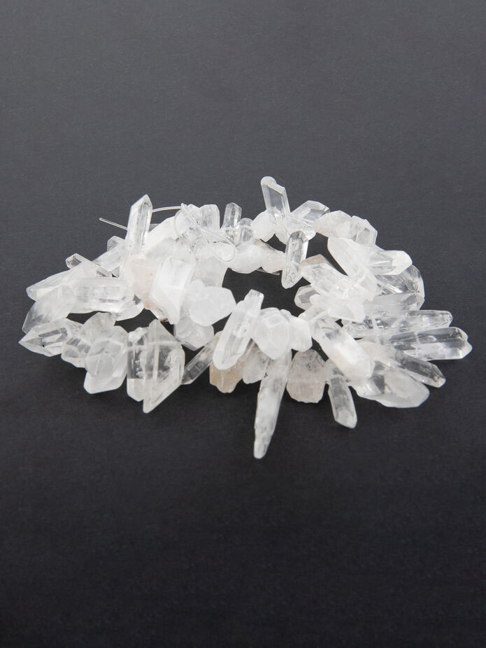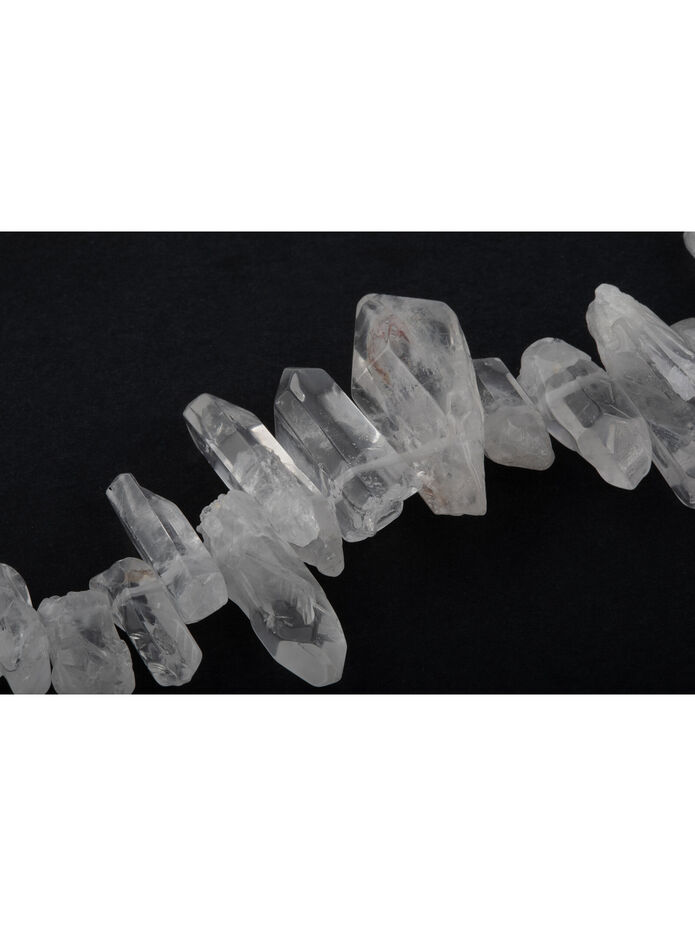 Neukončená šňůra z nepravidelných kamenů surového přírodního křišťálu, velké kamínky mají délku až 35 mm. Na šňůře je navlečeno cca 60 nepravidelných a různě velkých kamínků.