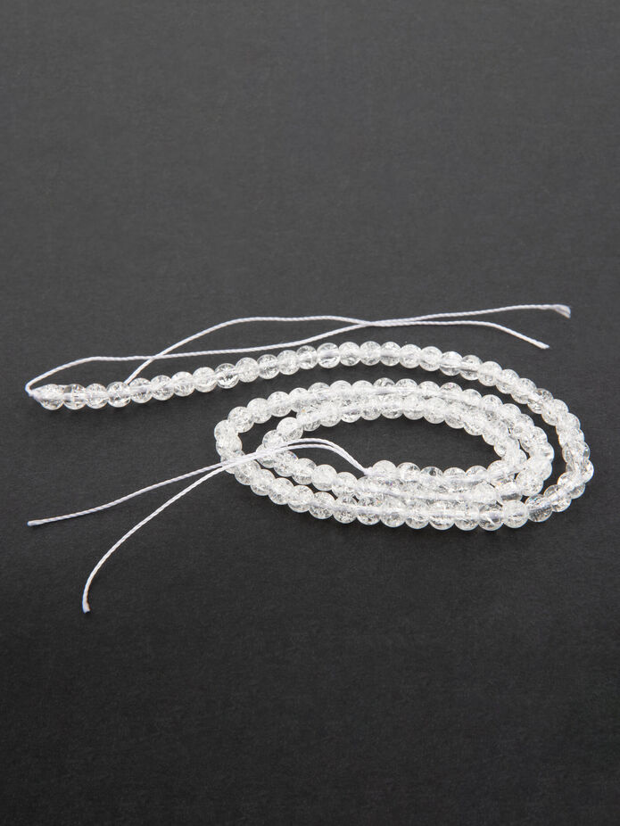 Neukončená šňůra s křišťálovými pukanými korálky o průměru 4 mm. Na šňůře je navlečeno 88 - 90 korálků.