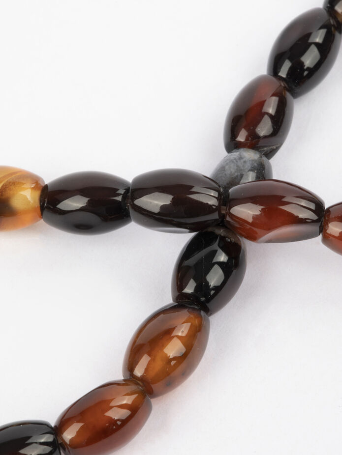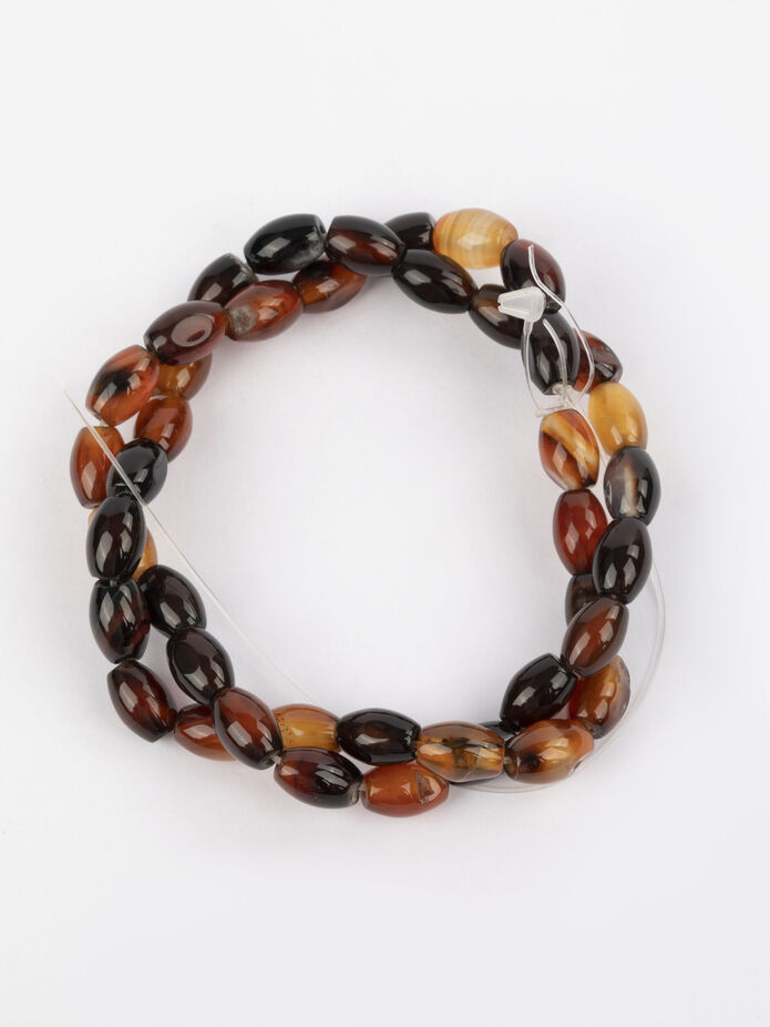 Neukončená šňůra s korálky z hnědého achátu.