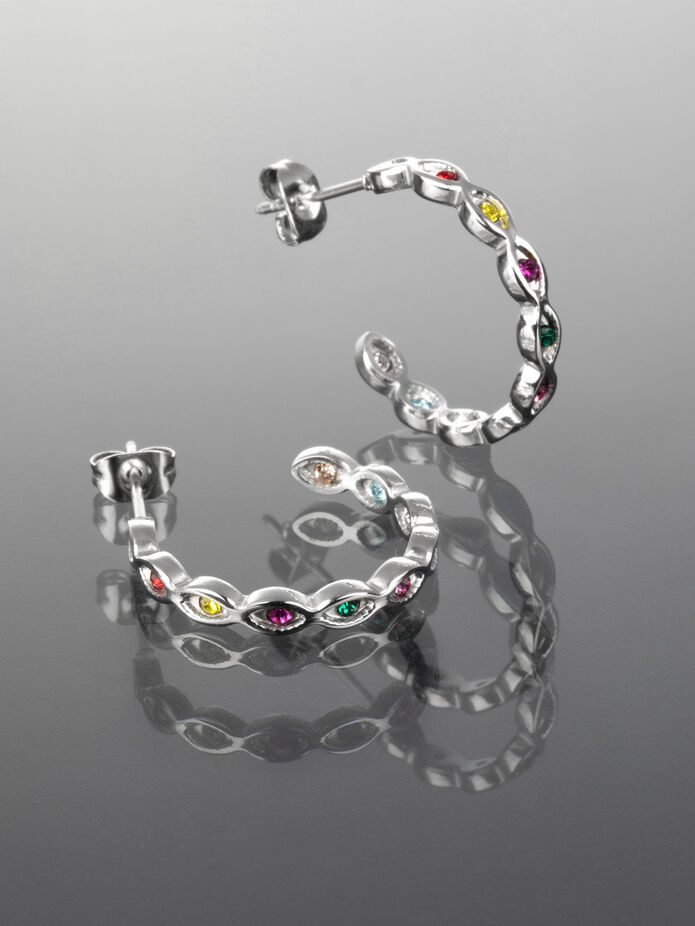 Krásné kruhové náušnice z chirurgické oceli s drobnými barevnými krystaly jsou skvělým doplňkem k jakémukoliv outfitu.