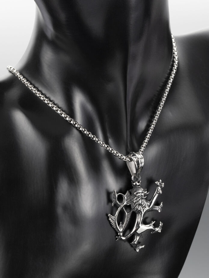 Krásný masivní přívěsek ve tvaru Českého lva z chirurgické oceli je skvělým doplňkem k jakémukoliv outfitu.