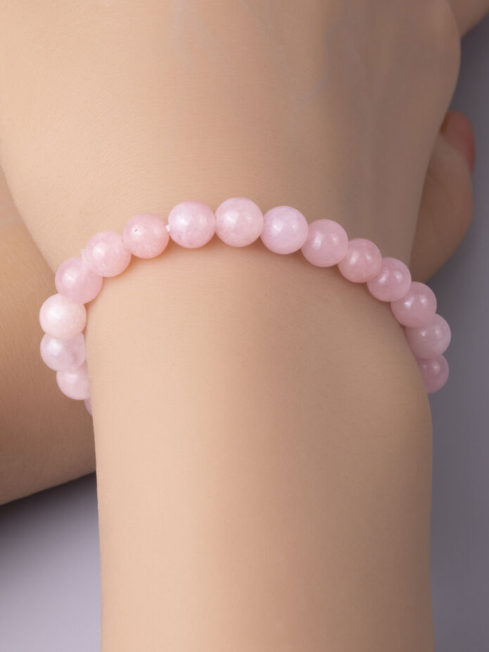 Krásný náramek z malých korálků světle růžového jadeitu je skvělým doplňkem ke každému outfitu, perfektně doladí a podtrhne nevšední vzhled každé dámy či slečny.