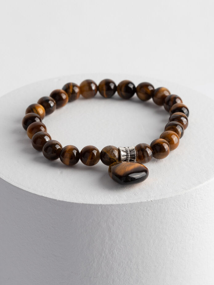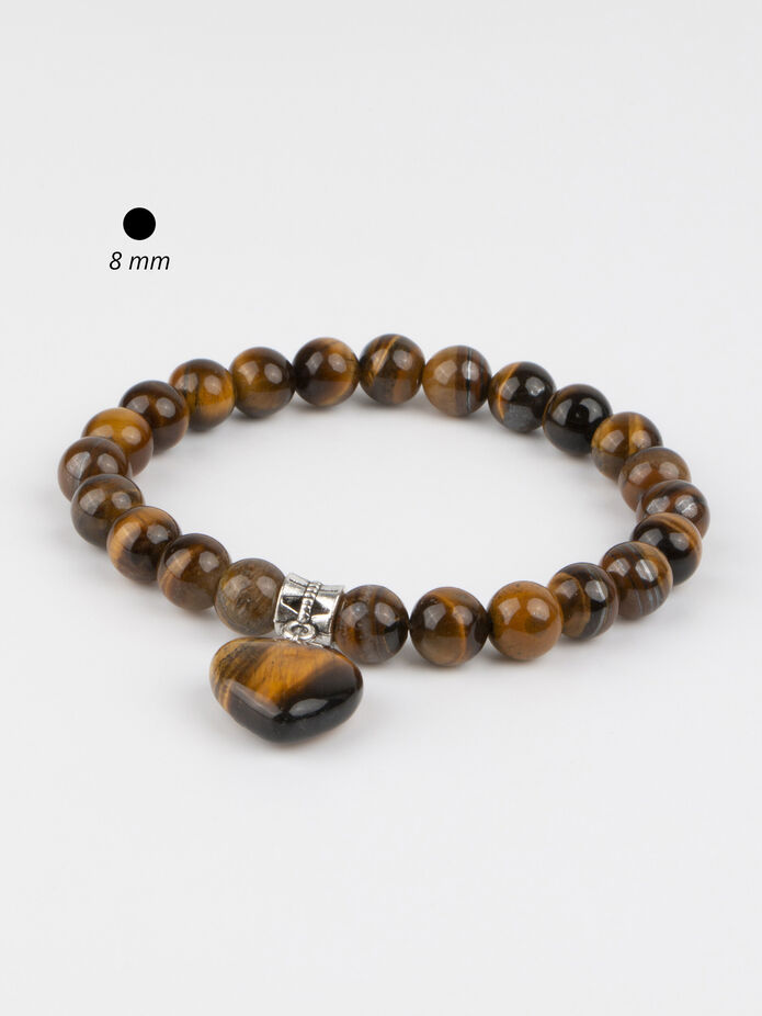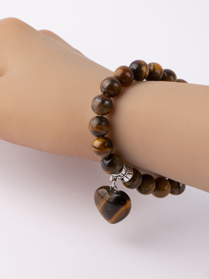 Krásný náramek z tygřího oka s přívěskem ve tvaru srdce je skvělým doplňkem ke každému outfitu. Korálky o průměru 0,8 cm jsou navlečeny na gumičce, obvod náramku je 18 cm.